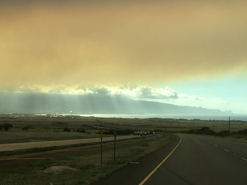 Yesterday was my first full day on Maui. There's a beautiful beach area that I always go to that has a nice walking path and easy parking. I've been looking forward to going to that beach again since I left here last February. All last week I kept thinking about it and how relaxing it is, how beautiful the scenery is and the ease of walking on the paved pathway that weaves in and around the resort area. There's great spots to relax and write and really it's been all I could think about in my anticipation of coming to Maui. So, naturally that was my plan for my first day. That being said, I had some chores that needed to be done where I'm staying at my brother's place. He and his wife live up country just below Haleakala in Makawao. The beach I wanted to visit was clear on the other side of the island near Kihei. So I finished my chores, packed my beach bag and headed to Starbucks where I was going to get some online work done that I needed to get caught up on for my business. I was still thinking about my lovely beach walk, but knew this needed to be done first. On my way down the mountain heading into town I noticed a small brush fire in the distance. I didn't pay much attention to it, other than noting that it made sense given how hot it has been lately and all the dry brush on the fallow land was a big tinder box waiting to ignite. I could see the helicopters running water over to the area in massive giant buckets. I figured it would be out before long, as it seemed like they were catching it early. So I grabbed my Starbucks and opened up my computer to do some work. Once this was finished, I could head to my beach and really enjoy this beautiful sunny day.